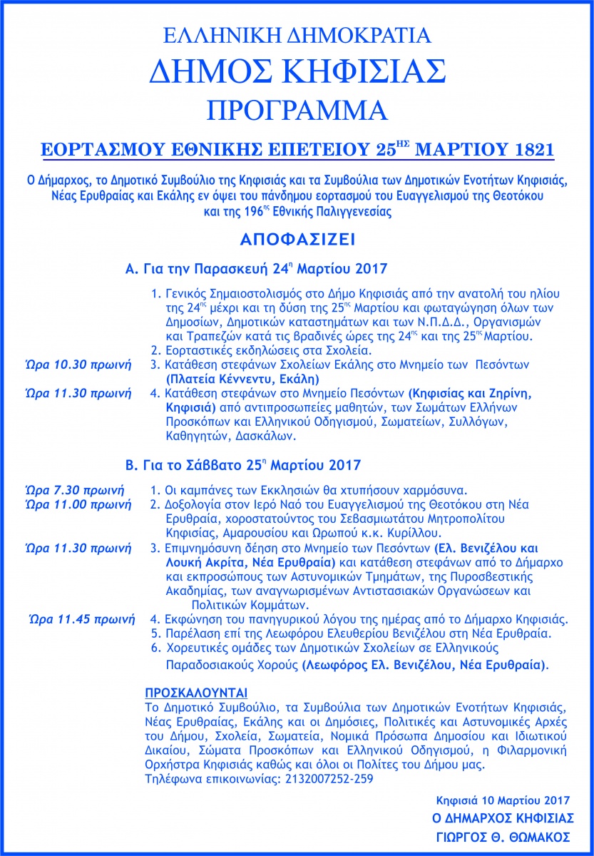 Εορτασμός Εθνικής Επετείου 25ης Μαρτίου 1821