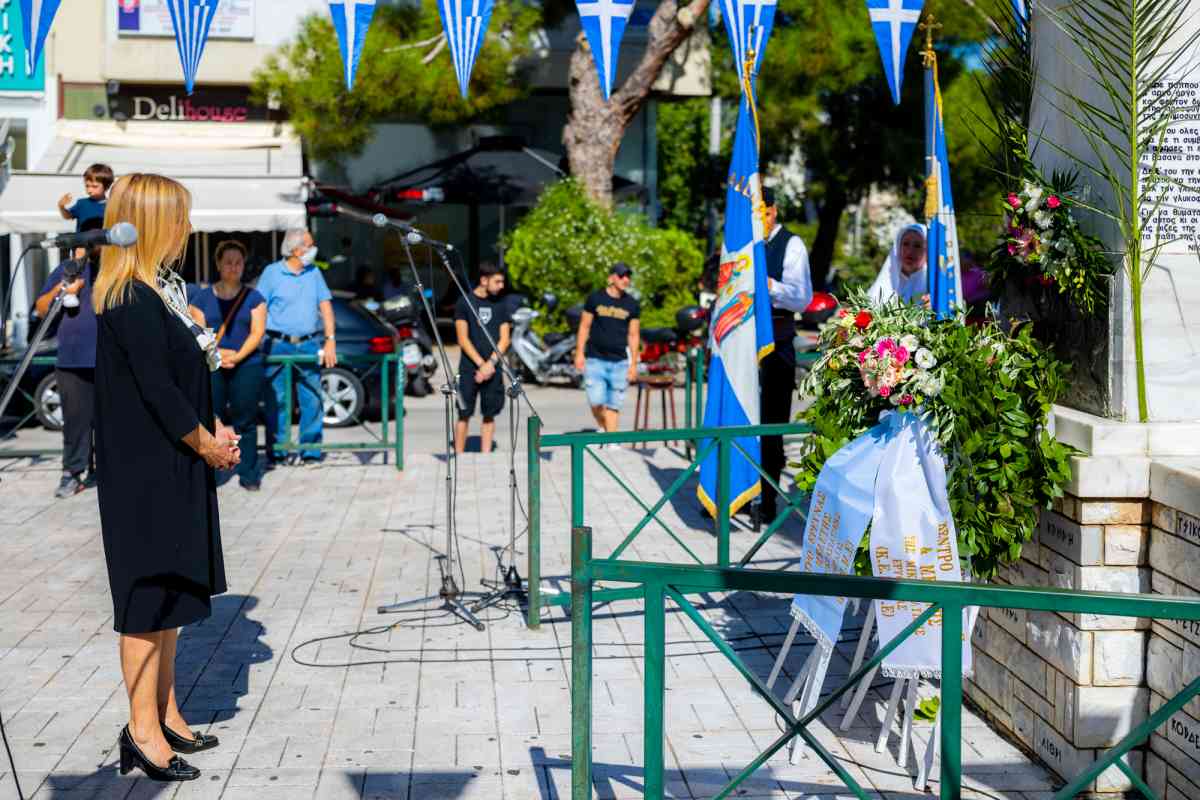 Ακολούθως απένειμε τιμητική πλακέτα στην Ένωση Μικρασιατών Νέας Ερυθραίας για την προσφορά της και τη διοργάνωση του μνημόσυνου για τα θύματα της Μικρασιατικής Καταστροφής. Την πλακέτα παρέλαβε η Πρόεδρος της Ένωσης κα Κατερίνα Μουστάκη.