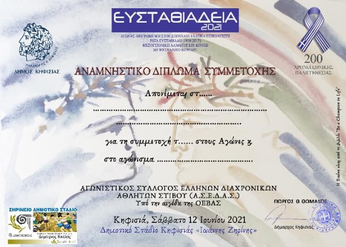 Για δεύτερη χρονιά ο Δήμος Κηφισιάς με τον Αθλητικό Σύλλογο Ελλήνων Διαχρονικών Αθλητών Στίβου και σε συνεργασία με τον Αθλητικό Όμιλο ´Ολυμπιάδα Κηφισιάς (Ε.Ο.Κ.Α), συνδιοργάνωσαν στο Δημοτικό Στάδιο Κηφισιάς "Ιωάννης Ζηρίνης" τα «ΕΥΣΤΑΘΙΑΔΕΙΑ 2021» προς τιμήν του Επικοντιστή Ρήγα Ευσταθιάδη.