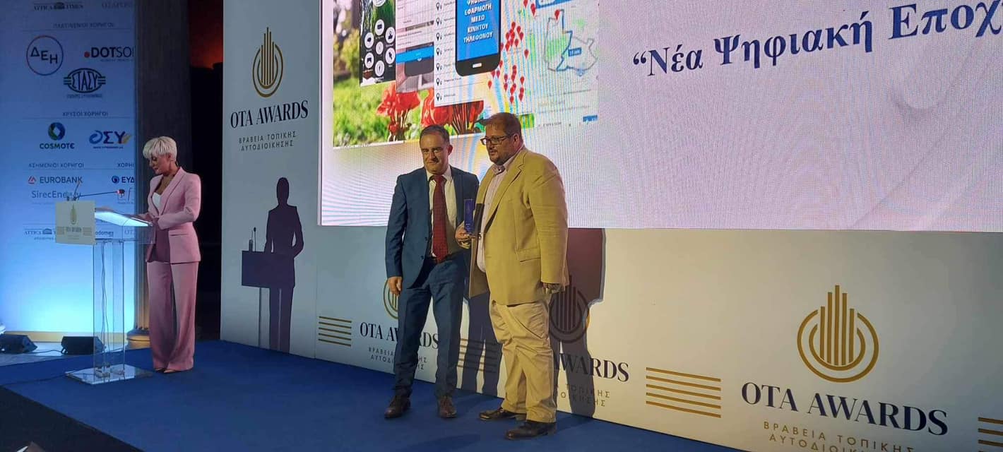 Το βραβείο για τη «Νέα Ψηφιακή Εποχή» στα OTA AWARDS παρέλαβε ο αρμόδιος αντιδήμαρχος Βαγγέλης Αυλήτης.
