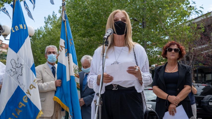 Η πρόεδρος του ΚΕΜΜΕ Έφη Κούτση, συντονίστρια των εκδηλώσεων πραγματοποίησε ολιγόλεπτη ομιλία στην οποία αναφέρθηκε στο νόημα της μνήμης.