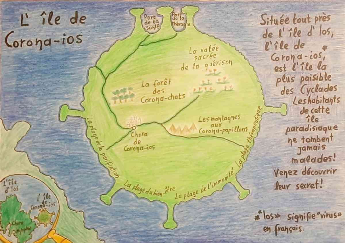 Οι μαθητές και οι μαθήτριές ξεπέρασαν τις δυσκολίες της εξ αποστάσεως εκπαίδευσης και με μεγάλο ενθουσιασμό και έμπνευση δημιούργησαν τα δικά τους φανταστικά Ελληνικά νησιά και προσκάλεσαν Γάλλους επισκέπτες να τα ανακαλύψουν.