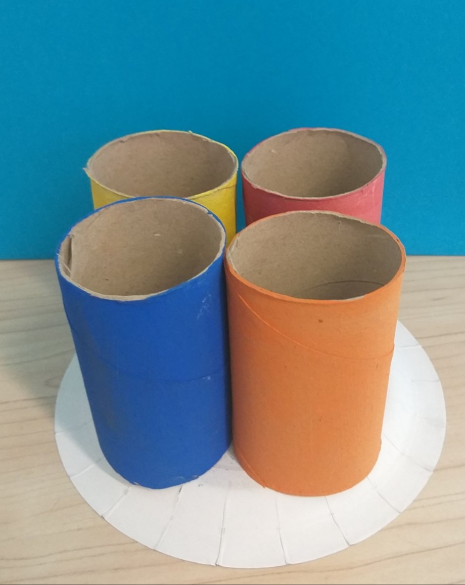 Αρχικά βάφουμε τα ρολά με διάφορα χρώματα.