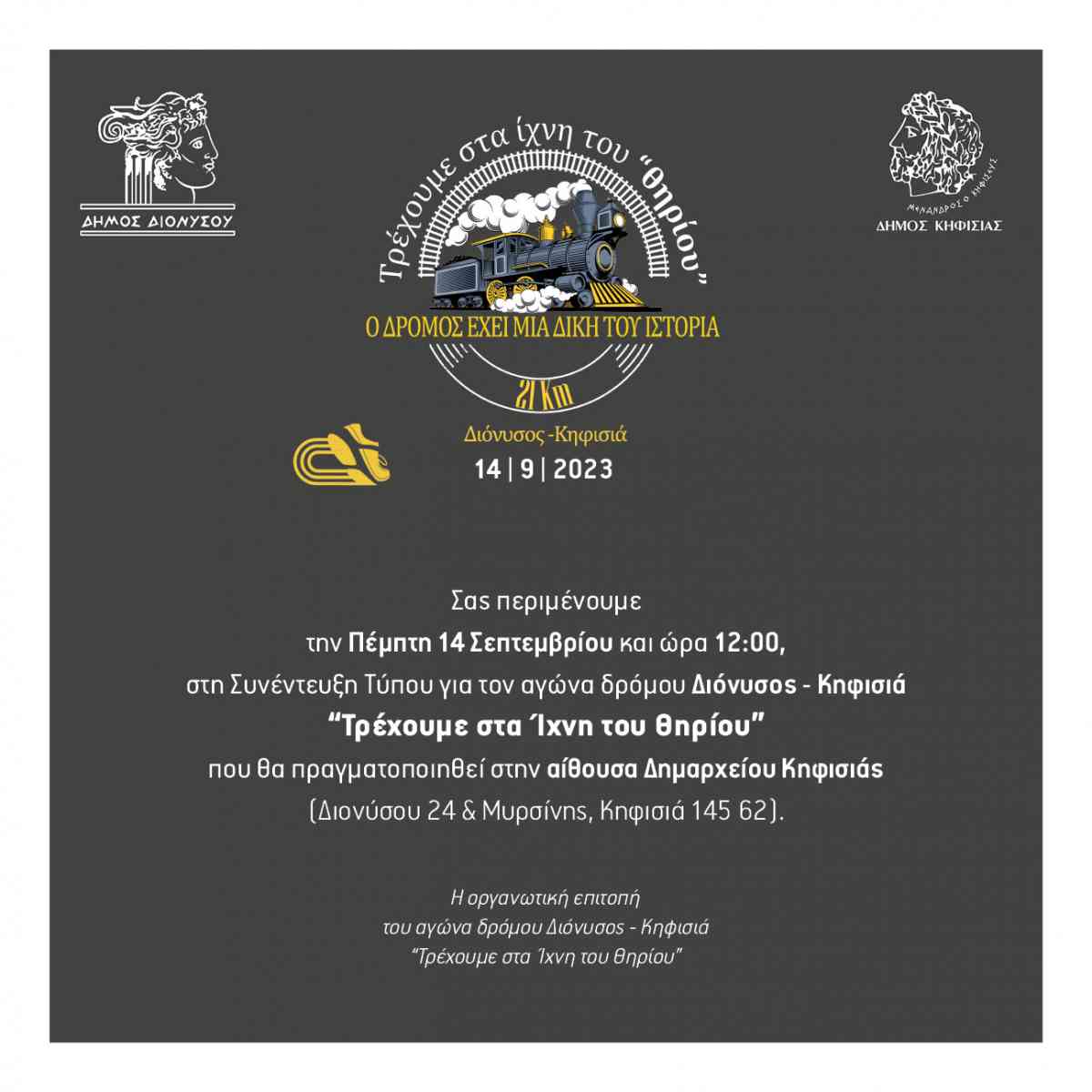 Ο αγώνας «ΤΡΕΧΟΥΜΕ ΣΤΑ ΊΧΝΗ ΤΟΥ ΘΗΡΙΟΥ» ενώνει τους Δήμους Διονύσου και Κηφισιάς με μία μοναδική διαδρομή, την Κυριακή 24 Σεπτεμβρίου.