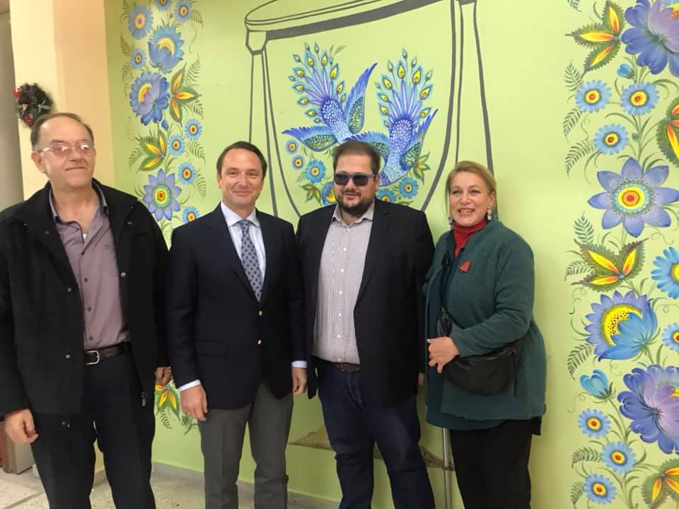Ο πρέσβης της Ουκρανίας κ.Σεργίι Σουτένκο επισκέφτηκε τον Δήμο Κηφισιάς για να εγκαινιάσει την εικαστική δημιουργία της ζωγράφου Natalia Stativa-Zharko,, παρουσία του Αντιδημάρχου -Προέδρου της Πρωτοβάθμιας Σχολικής Επιτροπής Παιδείας του Δήμου Κηφισιάς Βαγγέλη Αυλήτη, του Διευθυντή του 7ου Δημοτικού Σχολείου κ.Λάμπρου και του συλλόγου Γονέων του σχολείου, τους οποίους και ευχαρίστησε για την φιλοξενία κ την άρτια οργάνωση.