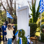 Επιμνημόσυνη δέηση και κατάθεση στεφάνων από σχολεία και συλλόγους παρουσία του Δημάρχου Κηφισιάς Γιώργου Θωμάκου, στο Μνημείο των Πεσόντων, στην πλατεία Κέννεντυ.