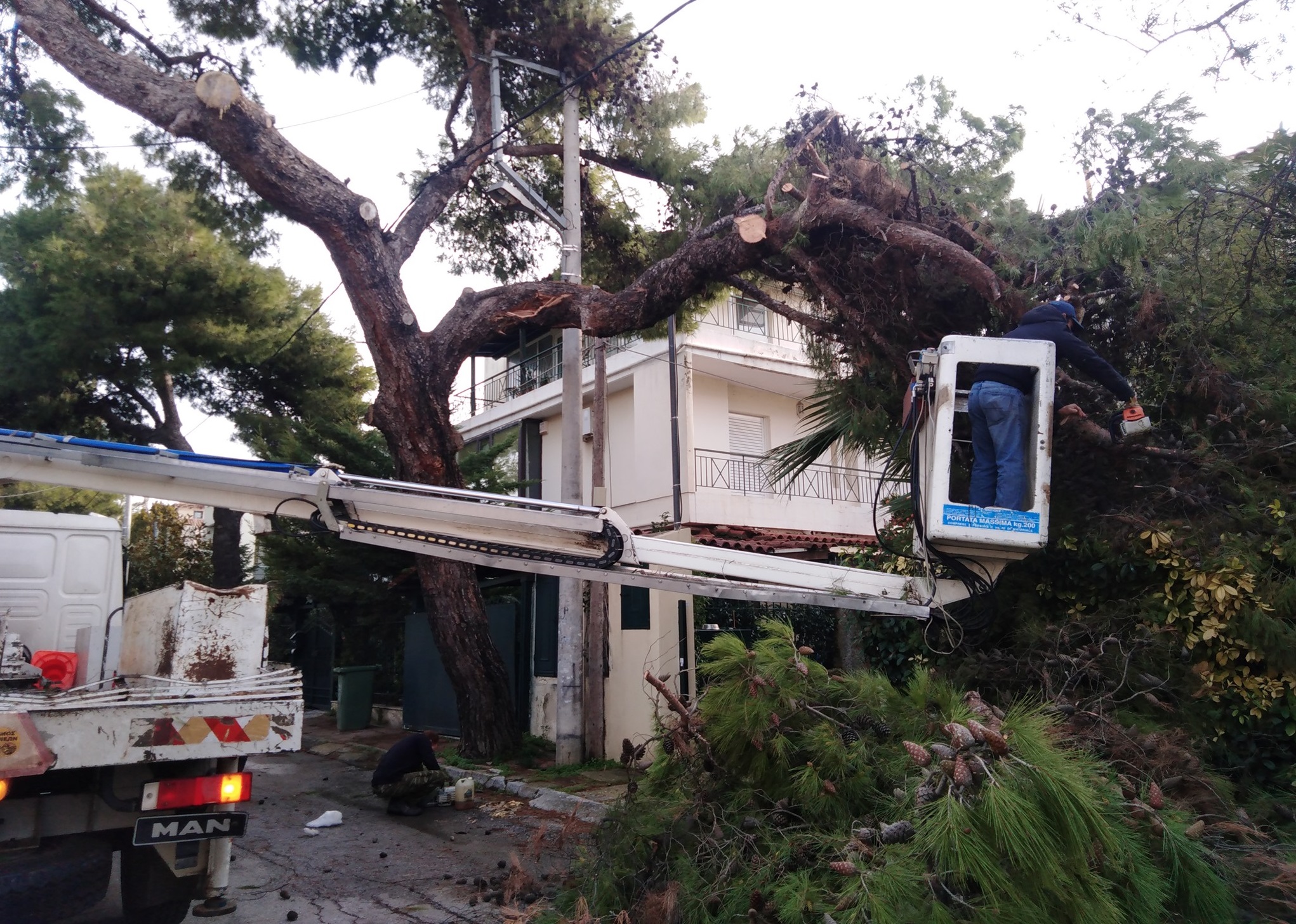 Συνεχίζεται με την ίδια ένταση η προσπάθεια για την απομάκρυνση των τεράστιων ποσοτήτων πεσμένων δέντρων και κλαδιών, η οποία θα διαρκέσει για μεγάλο χρονικό διάστημα. Εκτελείται από συνεργεία του Δήμου, μισθωμένα μηχανήματα ιδιωτών και σημαντική βοήθεια παρέχεται από την Περιφέρεια Αττικής.