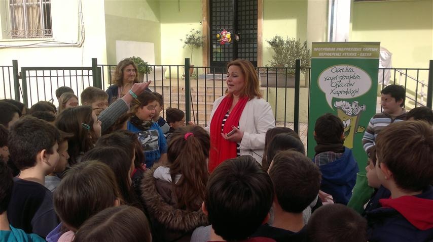 Οι μαθητές των σχολείων 2ο Δημοτικό Σχολείο Κηφισιάς, 1ο Δημοτικό Σχολείο Νέας Ερυθραίας και Δημοτικό Σχολείο Εκάλης παρακολούθησαν με ιδιαίτερο ενδιαφέρον την ενημέρωση για την αξία ανακύκλωσης του χαρτιού, από την κα Σοφία Κορωναίου Περιφερειακή Σύμβουλος & Μέλος του Ε.Ε. του Ε.Δ.Σ.Ν.Α. και από την κα Ευθυμία Σταματοπούλου Αν. Προϊσταμένη Τμ. Διαλογής της Δ/νση Ανακύκλωσης ΕΔΣΝΑ.
