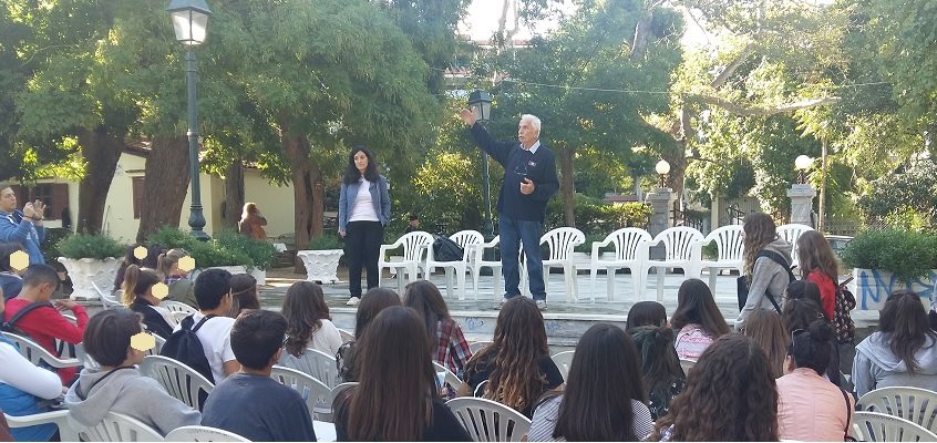 Κατόπιν της περιήγησής τους στο Άλσος, η Πρόεδρος Κλεοπάτρα Χατζοπούλου μίλησε στους μαθητές για τη σημασία του αστικού πρασίνου και την προστασία του