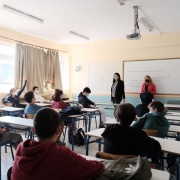 Ακολούθως, επισκέφθηκε Τμήμα της Γ΄ Γυμνασίου του σχολείου, όπου συνομίλησε με μαθήτριες και με μαθητές για τα Εργαστήρια Δεξιοτήτων, τον Σχολικό Επαγγελματικό Προσανατολισμό και τις σκέψεις τους για το μέλλον.
