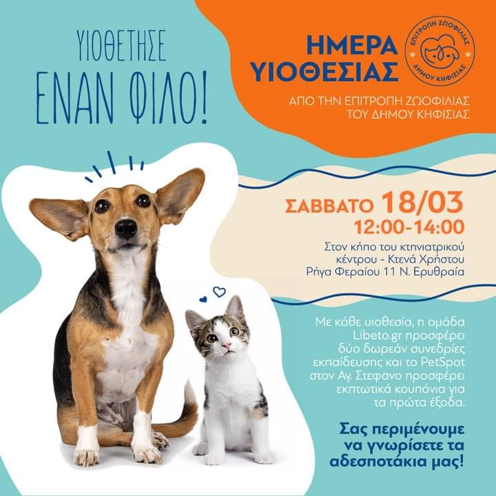 Με κάθε υιοθεσία η ομάδα του Libeto.gr προσφέρει δύο δωρεάν συνεδρίες εκπαίδευσης και το PetSpot Αγ. Στεφάνου εκπτωτικά κουπόνια για τα πρώτα έξοδα.