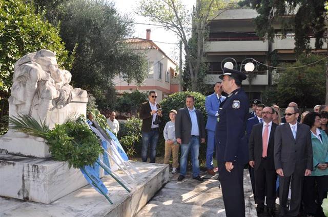 Ο Δήμαρχος Κηφισιάς στον πανηγυρικό της ημέρας μίλησε για την εθνική επέτειο και τον Ελληνικό Ηρωισμό. Δεν παρέλειψε να αναφερθεί και στους ξένους συμμάχους μας που πολέμησαν στο πλάι των προγόνων μας κάνοντας μια συμβολική αναφορά στον γενναίο Βρετανό Διοικητή δύο Μοιρών Hurricane, Επισμηναγό Pat Pattle που πολέμησε και έχασε την ζωή του στην χώρα μας.