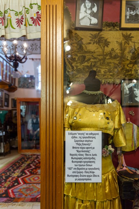 Ανάμεσα στα ενδύματα που ξεχωρίζουν είναι αυτά της κορυφαίας και χαρισματικής ερμηνεύτριας του ρεμπέτικου Ρόζας Εσκενάζυ. Διατηρούνται σε άριστη κατάσταση, τόσο ένα φόρεμα που φορούσε στο πάλκο όσο και ένα δεύτερο που χρησιμοποιούσε για τους περιπάτους της.