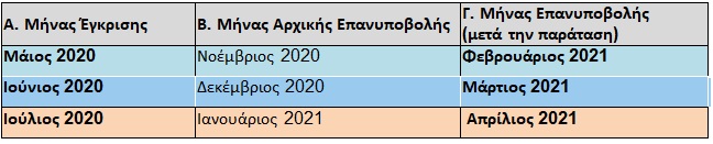 Γ. ο μήνας επανυποβολής, υπολογίζοντας την τρίμηνη παράταση: