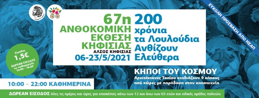 Η τελετή εγκαινίων της 67ης Ανθοκομικής Έκθεσης πραγματοποιήθηκε την Παρασκευή 7 Μαΐου, σύμφωνα με τα υγειονομικά πρωτοκόλλα της αρμόδιας επιτροπής. Τη λιτή τελετή εγκαινίων ευλόγησε ο Αρχιερατικός Επίτροπος, π. Χρίστος Κυριακόπουλος. Μεταφέρθηκαν οι ευχές του Μητροπολίτη Κηφισίας, Αμαρουσίου και Ωρωπού κ. Κυρίλλου για τη συνέχιση του ιστορικού θεσμού της Κηφισιάς.