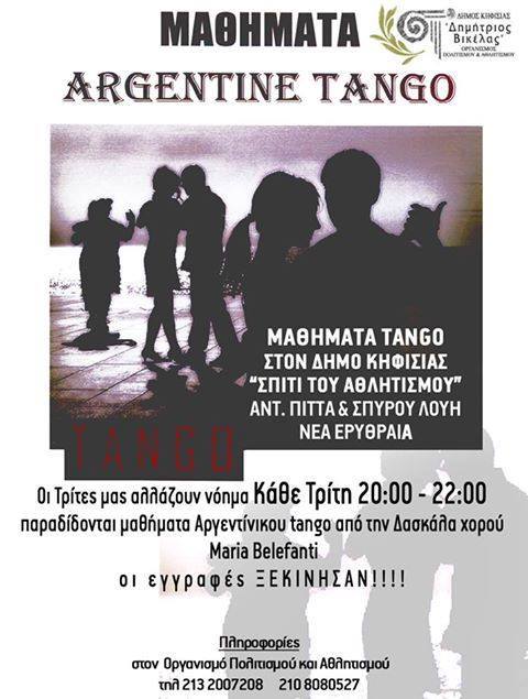 Κάθε Τρίτη 20.00-22.00 παραδίδονται μαθήματα Αργεντίνικου tango από την δασκάλα χορού Maria Belefanti.