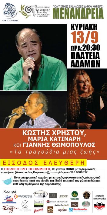 ΜΟΥΣΙΚΗ ΒΡΑΔΙΑ με τους ΚΩΣΤΗ ΧΡΗΣΤΟΥ, ΜΑΡΙΑ ΚΑΤΙΝΑΡΗ και ΓΙΑΝΝΗ ΘΩΜΟΠΟΥΛΟ
