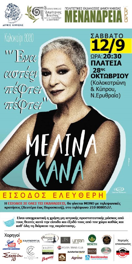 Το Ν.Π.Δ.Δ. “Δ.Βικέλας” του Δήμου Κηφισιάς εναρμονισμένο πλήρως στις οδηγίες του ΕΟΔΥ και των αρμοδίων αρχών εξ’ αιτίας της πανδημίας του covid-19, για την προστασία της δημόσιας υγείας, έχει λάβει όλα τα απαραίτητα μέτρα για την ασφάλεια των δημοτών και των καλλιτεχνών προκειμένου να διεξαχθούν απρόσκοπτα οι πολιτιστικές εκδηλώσεις των ΜΕΝΑΝΔΡΕΙΩΝ 2020.