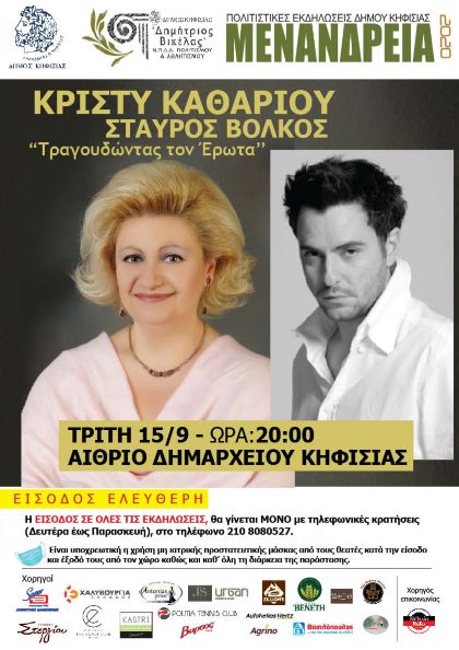 Το Ν.Π.Δ.Δ. “Δ.Βικέλας” του Δήμου Κηφισιάς εναρμονισμένο πλήρως στις οδηγίες του ΕΟΔΥ και των αρμοδίων αρχών εξ’ αιτίας της πανδημίας του covid-19, για την προστασία της δημόσιας υγείας, έχει λάβει όλα τα απαραίτητα μέτρα για την ασφάλεια των δημοτών και των καλλιτεχνών προκειμένου να διεξαχθούν απρόσκοπτα οι πολιτιστικές εκδηλώσεις των ΜΕΝΑΝΔΡΕΙΩΝ 2020.
