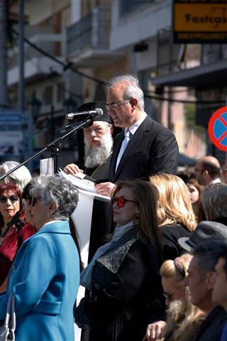 Μετά την δοξολογία ακολούθησε επιμνημόσυνη δέηση στο Μνημείο των Πεσόντων στη Νέα Ερυθραία και κατάθεση στεφάνων από τον Δήμαρχο Κηφισιάς Γιώργο Θωμάκο και εκπροσώπους των Σωμάτων Ασφαλείας και των Πολιτικών Κομμάτων.