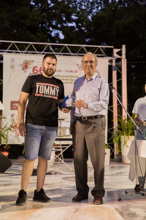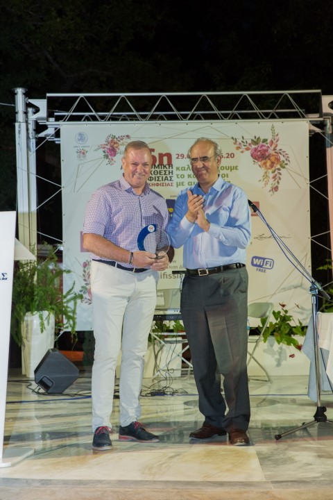 Ο Γιώργος Περγαντής της εταιρείας «BALD EAGLES» για τις άψογες υπηρεσίες ασφαλείας. Τη βράβευση έκανε ο Δήμαρχος.