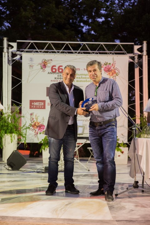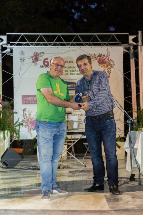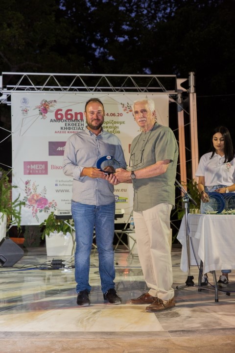 Ο Χρυσός Χορηγός της Έκθεσης MEDI PRINOU για τη σταθερή αρωγή της στην Ανθοκομική. Βραβεύτηκε από τον πρόεδρο της Ανθοκομικής.