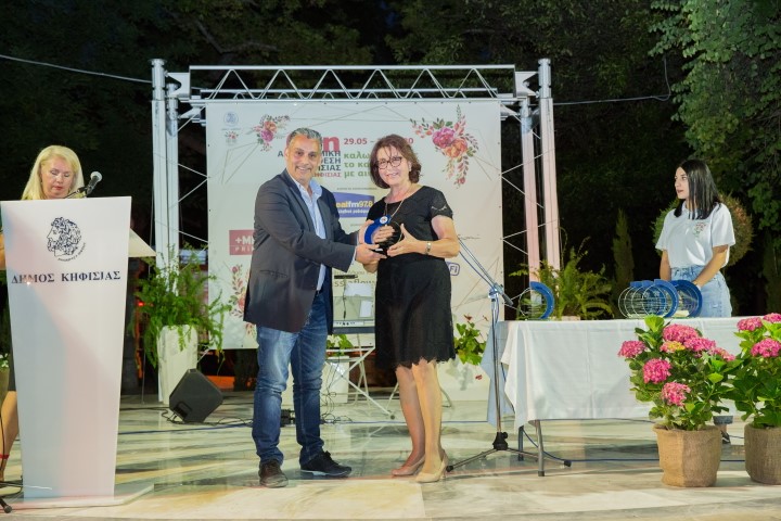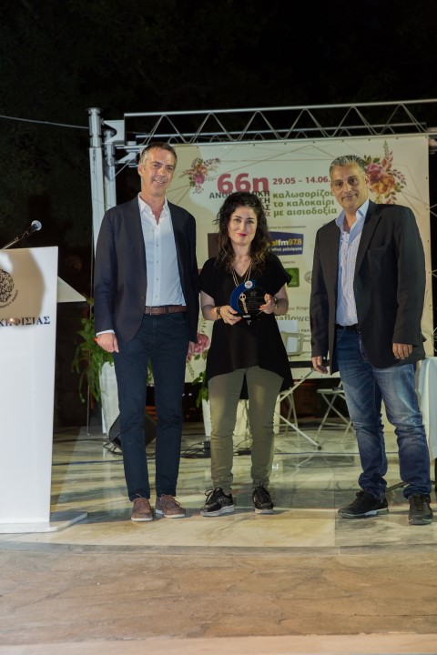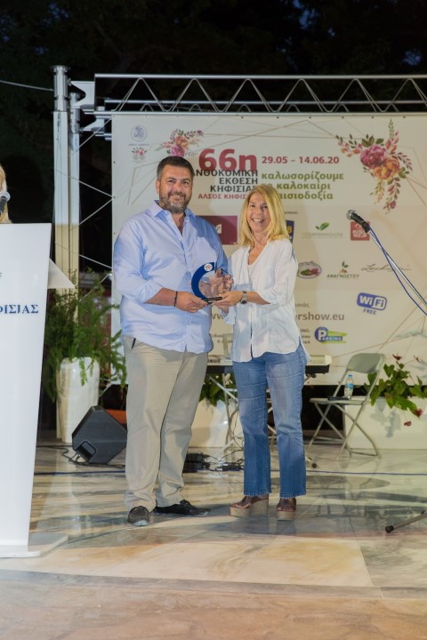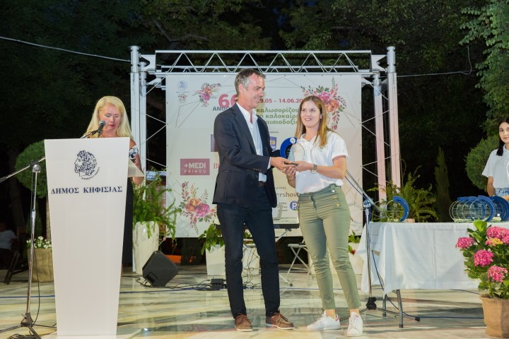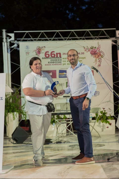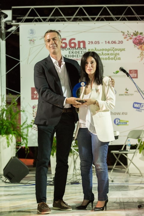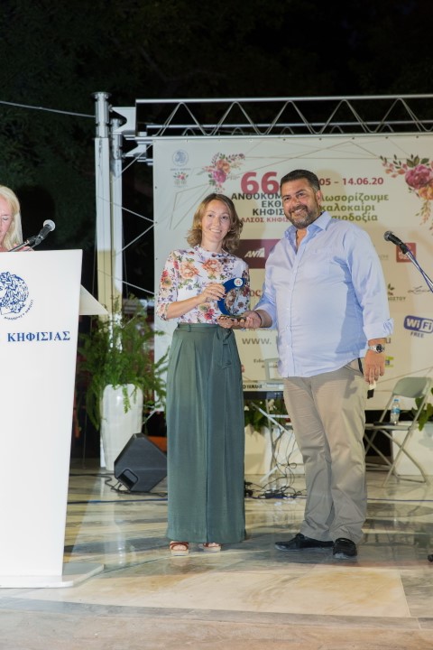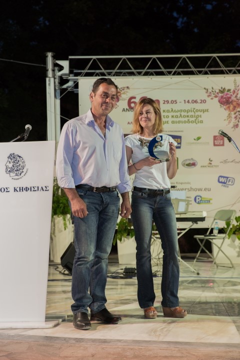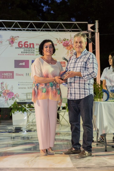 Η Ελίνα Κατσίκα Γεωπόνος, Αρχιτέκτων Tοπίου για το σχεδιασμό και την υλοποίηση της σύνθεσης φυτών και λουλουδιών που κόσμησε το κέντρο της Κηφισιάς στα πλαίσια της 66ης Ανθοκομικής Έκθεσης. Τη βράβευση έκανε ο Μάρκος Πανέττας Πρόεδρος του Εμπορικού Συλλόγου Κηφισιάς.