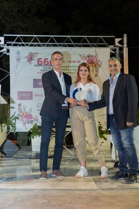 Η Χαρά Νάσιου εκπροσωπώντας το προσωπικό του Γραφείου Ανθοκομικής για τη συνολική προσφορά στην Ανθοκομική Έκθεση. Η βράβευση έγινε από τον αντιπρόεδρο της Ανθοκομικής.