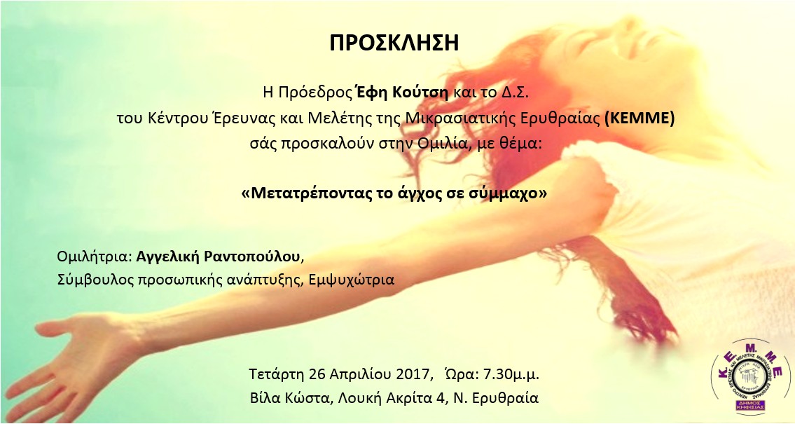 Ομιλία: «Μετατρέποντας το άγχος σε σύμμαχο»