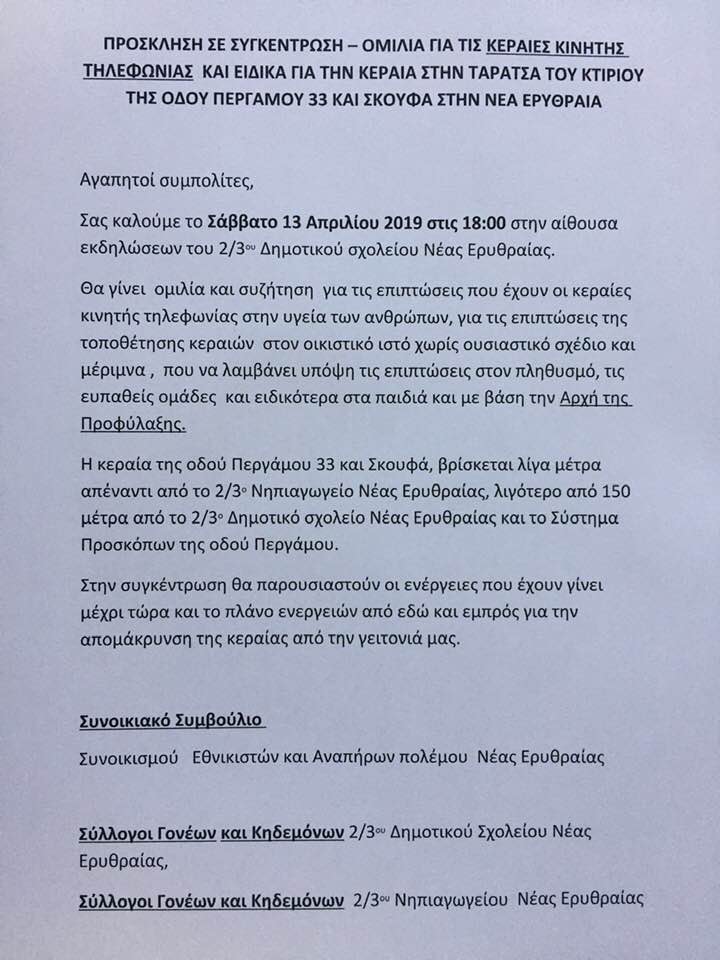 Ομιλία για τις κεραίες κινητής τηλεφωνίας