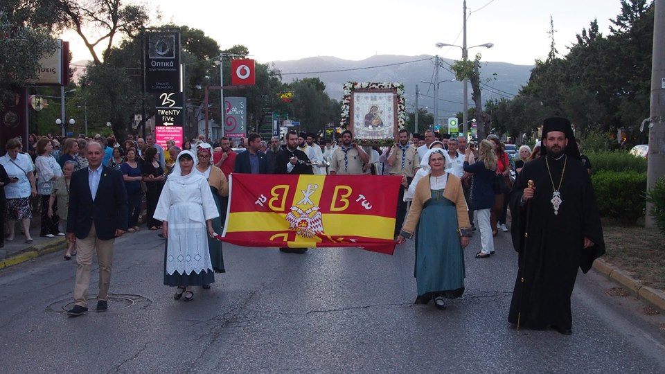 Στον Πανηγυρίζοντα Ιερό Ναό της Αγίας Τριάδος Νέας Κηφισίας, Κλήρος και Λαός σε κλίμα κατάνυξης υποδέχθηκε την Ιερά Εικόνα της Παναγίας ΦΟΒΕΡΑΣ ΠΡΟΣΤΑΣΙΑΣ, την οποία μετέφερε συνοδεία Αγιορειτών Πατέρων από την Ιερά μονή Κουτλουμουσίου.