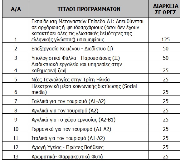 Τα πρώτο τμήμα που λειτούργησε στον Δήμο μας είναι το τμήμα «Ισπανικά για τουρισμό», διάρκειας 25 ωρών, το οποίο ξεκίνησε τον Ιανουάριο και θα ολοκληρωθεί στις 13/02/2020.