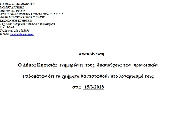 Προνοιακά επιδόματα από τον Δήμο Κηφισιάς