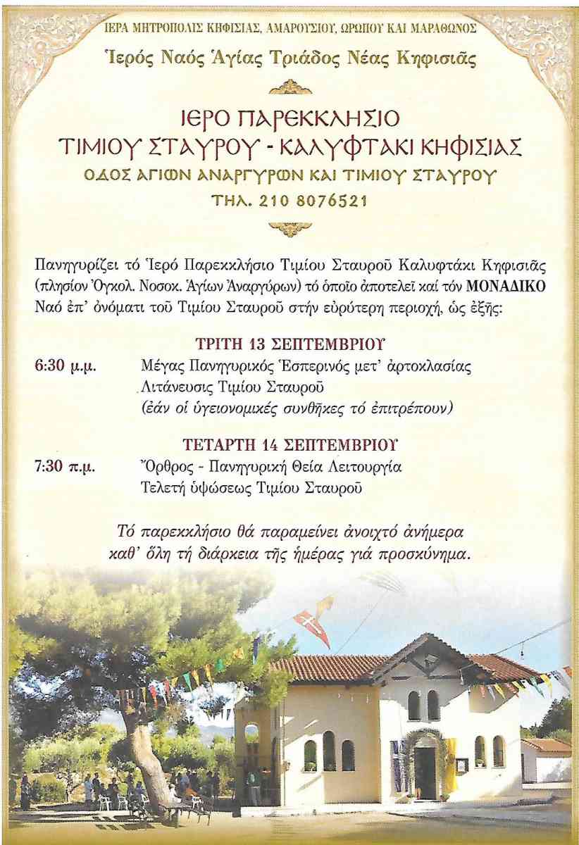 Π Α Ν Η Γ Υ Ρ Ι Σ Ιερού Παρεκκλησιου «Ο Τίμιος Σταυρός» Οδός Τιμιου Σταυρού Καλυφτάκι Κηφισιάς (Πλησίον Ογκολογικού Νοσοκομείου)