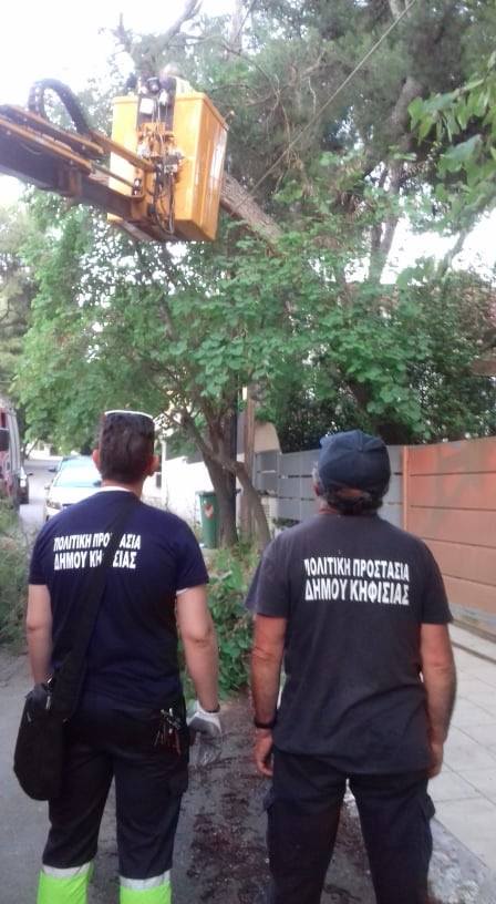 Άμεση είναι η κινητοποίηση της Υπηρεσίας Πολιτικής Προστασίας του Δήμου Κηφισιάς και σε έκτακτα περιστατικά. Την Κυριακή 17/5 βρέθηκε στην οδό Δειράδων για την αντιμετώπιση περιστατικού πτώσης δέντρου.