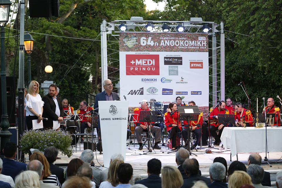 Ο Δήμαρχος Κηφισιάς Γιώργος Θωμάκος (εδώ), κατά την ομιλία του, τόνισε μεταξύ άλλων «Η Ανθοκομική Έκθεση της Κηφισιάς έχει παύσει πλέον να αποτελεί στενά και μόνο μια άριστη ευκαιρία ποιοτικής και οικονομικής επιλογής φυτών και λουλουδιών. Εκπέμπει πολλαπλά μηνύματα και μια ανανεωτική στάση ζωής: Για το περιβάλλον, Την ευζωία, Την κοινωνική αλληλεγγύη. Με έμφαση εφέτος στη συνεργασία με το Σωματείο «Όραμα Ελπίδας» για την προσέλκυση δοτών μυελού των οστών. Και συνέχισε «Ο Δήμος μας, όπως και η Έκθεσή μας, έχουν κοινά χαρακτηριστικά: Συμμέτοχη και αισιοδοξία, Ελπίδα και καινοτομία. Είμαστε δεσμός τριών πόλεων φυσικού κάλλους, βαθιάς ιστορίας και παράδοσης. Κηφισιά, Νέα Ερυθραία και Εκάλη, διασφαλίζουν μια ιδανική ισορροπία χρήσεων γης, έναν μοναδικό συνδυασμό φυσικού και δομημένου περιβάλλοντος, με τους αναγκαίους περιορισμούς και μόνιμο σεβασμό στη χρήση της κατοικίας, επιδιώκοντας ταυτόχρονα πρόσφορα σύγχρονων υπηρεσιών μαζί με ανθρωπιά και αλληλεγγύη». Αναφέρθηκε επίσης στην συστηματική προσπάθεια που γίνεται για την διατήρηση του πρασίνου στο Δήμο μας. «Η Υπηρεσία Πρασίνου διατηρεί σε πολύ καλή κατάσταση δεκάδες πάρκα, εκατοντάδες δεντροστοιχίες, ενώ προβαίνει σε αλλεπάλληλες δεντροφυτεύεις τόσο στο βουνό μας, στην Πεντέλη μας, που πάλι πρασινίζει σε συνεργασία με τον ΣΠΑΠ, όσο και σε γειτονιές του Δήμου. Παράλληλα οι δημόσιοι και κοινωφελείς χώροι μας βελτιώνονται και ενισχύονται με νέες γεωτρήσεις για το πράσινό μας, με επισκευές στις λίμνες και στα σιντριβάνια, με περιφράξεις, επισκευές και αντικαταστάσεις οργάνων στις παιδικές χαρές». Τέλος ευχαρίστησε την Πρόεδρο και το Δ.Σ. της Ανθοκομικής Έκθεσης, τους παραγωγούς, τους εκθέτες, τους χορηγούς και όσους εργάζονται για την μεγάλη γιορτή στον Δήμο μας.