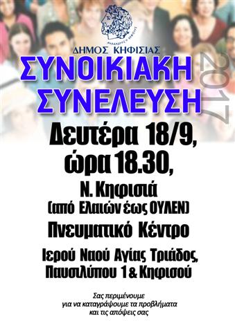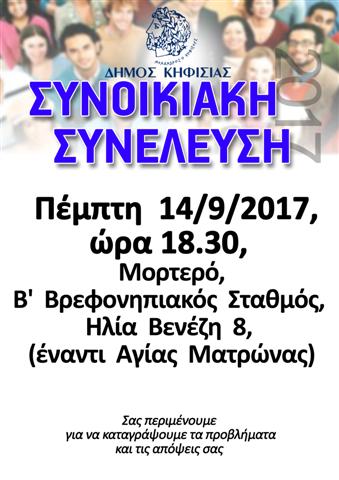 21/9/2017, ώρα 19.00, Άνω Κηφισιά, 5ο Δημοτικό Σχολείο, Αίθουσα Πολλαπλών Χρήσεων (Μπακογιάννη 31)