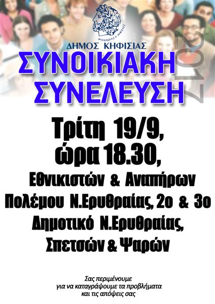 Αυτή την εβδομάδα Συνοικιακές Συνελεύσεις πραγματοποιούνται στην Νέα Κηφισιά, στην Άνω Κηφισιά και στην συνοικία Εθνικιστών & Αναπήρων Πολέμου Ν.Ερυθραίας.