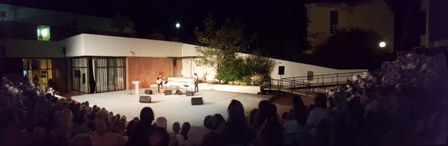 Σε ένα κατάμεστο αίθριο, την Παρασκευή 24 Αυγούστου, το κοινό απήλαυσε τη μουσική εκδήλωση «Μια βραδιά με τον Μάνο», με τον χαρισματικό ερμηνευτή Βασίλη Γισδάκη και τον δεξιοτέχνη της κιθάρας Μανόλη Ανδρουλιδάκη, σε ένα αφιέρωμα για τον αξέχαστο Μάνο Χατζιδάκι. Την εκδήλωση προλόγισε ο Αντιπρόεδρος του Ν.Π.Δ.Δ. Πολιτισμού & Αθλητισμού «Δημήτριος Βικέλας» Νικήτας Κόκκαλης, ο οποίος ανέφερε ότι οι περισσότερες εκδηλώσεις έχουν ελεύθερη είσοδο καθώς είναι πεποίθηση της διοίκησης ότι το πολιτιστικό αγαθό οφείλει να παρέχεται δίχως οικονομικούς περιορισμούς. Ωστόσο επεσήμανε, ότι τα έσοδα των 4 εκδηλώσεων στις οποίες υπάρχει αντίτιμο, θα διατεθούν στους πυρόπληκτους. Το Σάββατο 25 Αυγούστου, ο Μπάμπης Βελισσάριος με την εκρηκτική φωνή του, ψυχαγώγησε μελωδικά το κοινό, παρασύροντάς το σε ένα μουσικό μονοπάτι συνδεδεμένο με τις μνήμες μας. Την Κυριακή 26 Αυγούστου, κάτω από την υπέρλαμπρη πανσέληνο, η ξεχωριστή perfomer Tereza μας ταξίδεψε στο φεγγάρι με το “Fly me to the moon…”, καθώς και άλλα τραγούδια από ένα ευρύ ρεπερτόριο, που περιλάμβανε από Bossa Nova μέχρι Μ.Χιώτη.