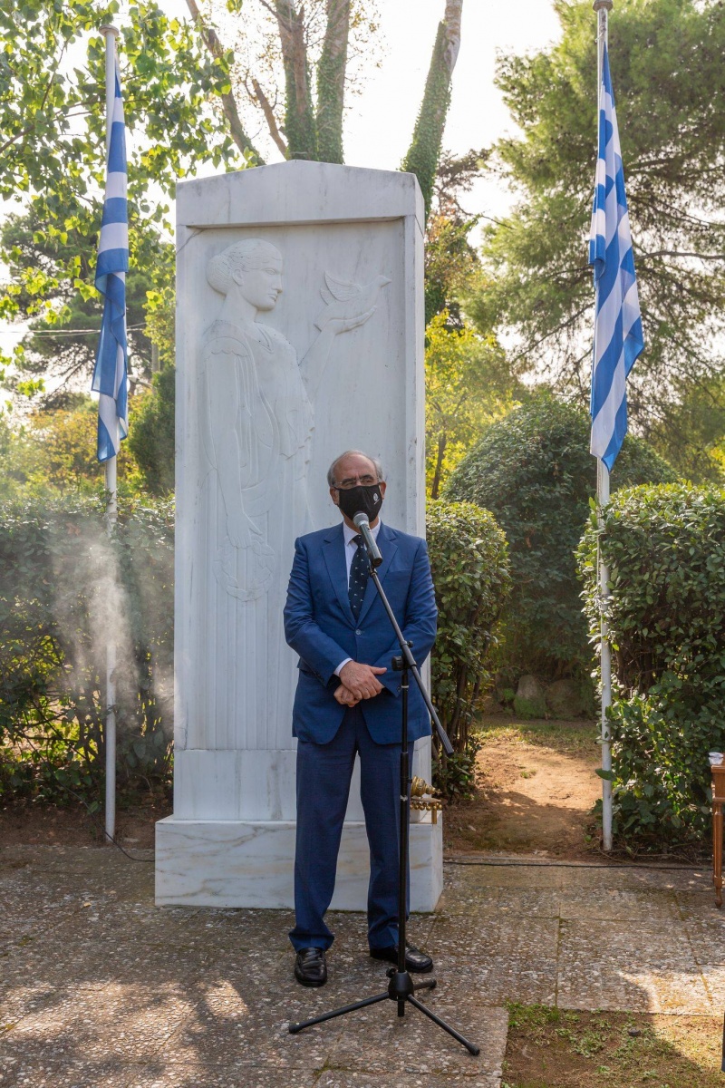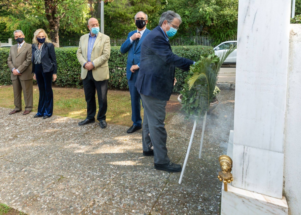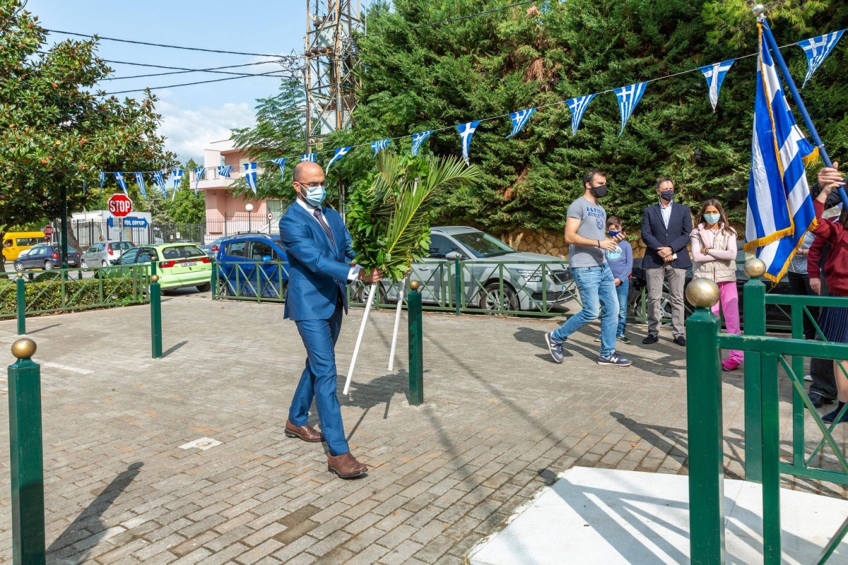 Με αυστηρή τήρηση των μέτρων προστασίας πραγματοποιήθηκαν οι καταθέσεις στεφάνων στα Ηρώα της Κηφισιάς, της Νέας Ερυθραίας και της Εκάλης από μαθητές Δημοτικών Σχολείων παρουσία του Δημάρχου Κηφισιάς Γιώργου Θωμάκου.