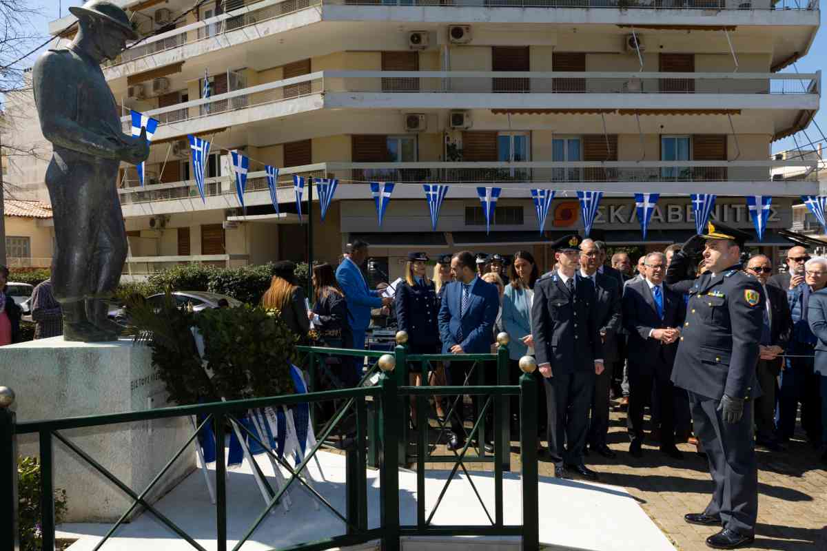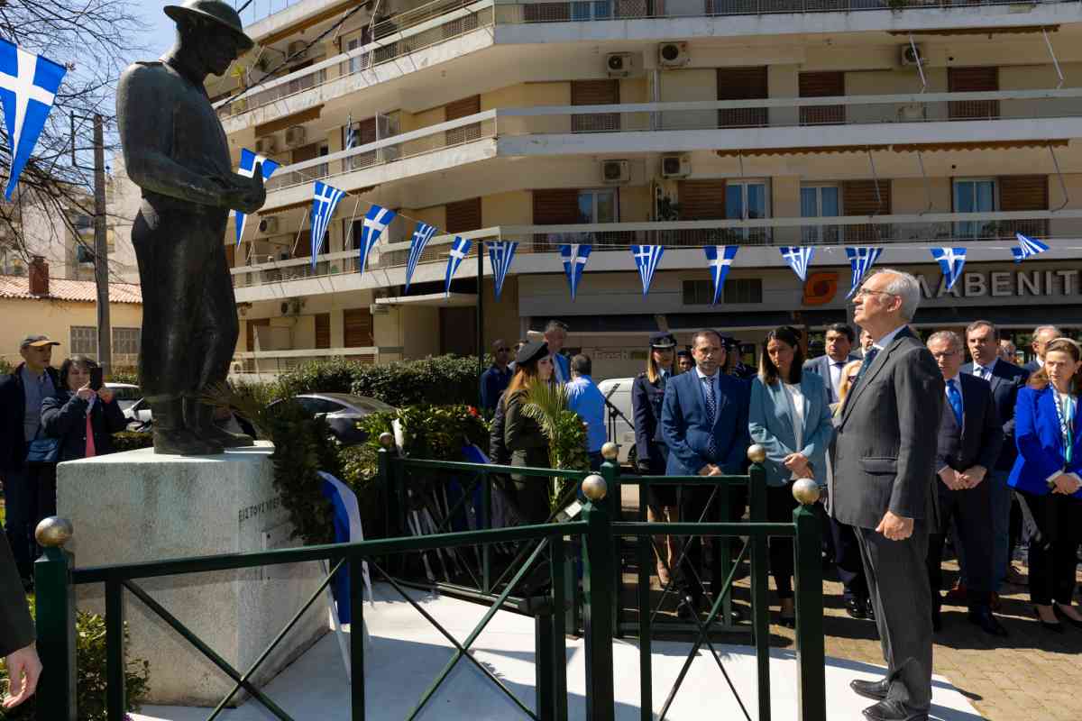 Μετά την δοξολογία ακολούθησε Επιμνημόσυνη Δέηση στο Μνημείο των Πεσόντων στη Νέα Ερυθραία και κατάθεση στεφάνων από τον Δήμαρχο Κηφισιάς Γιώργο Θωμάκο, τον Εκπρόσωπο της Βουλής των Ελλήνων- Βουλευτή Γιώργο Κουμουτσάκο, την Υπουργό Παιδείας και Θρησκευμάτων Νίκη Κεραμέως, την Αντιπεριφερειάρχη Βορείου Τομέα Λουκία Κεφαλογιάννη, εκπροσώπους της Ελληνικής Αστυνομίας, της Πυροσβεστικής Ακαδημίας, του Συνδέσμου Εφέδρων Αξιωματικών και των Κομμάτων. Ακολούθησε η τήρηση ενός λεπτού σιγής και η ανάκρουση του Εθνικού Ύμνου από την Φιλαρμονική “Ανδρέας Κατεβαίνης” του Δήμου Κηφισιάς.