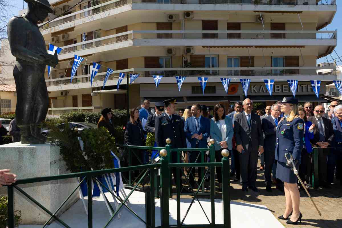 Στη συνέχεια πραγματοποιήθηκε η καθιερωμένη παρέλαση την οποία παρακολούθησε πλήθος κόσμου με σύμμαχο τον ανοιξιάτικο καιρό. Ο πανηγυρικός λόγος της Εθνικής μας εορτής, εκφωνήθηκε από την μαθήτρια της 3ης Λυκείου Βίκυ Ζωντανού, από το Αναξαγόρειο Λύκειο Νέας Ερυθραίας.