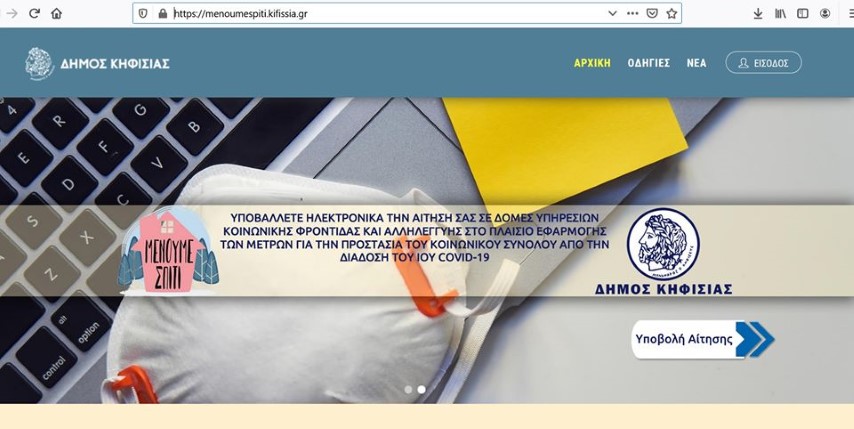 Επιπλέον, ο Δήμος Κηφισιάς δημιούργησε ιστότοπο για την εγγραφή των ενδιαφερομένων https://menoumespiti.kifissia.gr/ με τον οποίο μπορούν οι πολίτες να ζητήσουν βοήθεια στο σπίτι από τις κοινωνικές υπηρεσίες.