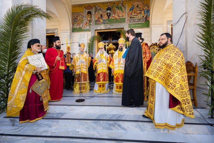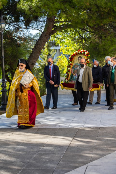 Μετά το τέλος της θείας Λειτουργίας έγινε λιτάνευση της Ιεράς Εικόνα στον προαύλειο χώρο της Μητρόπολης, συνοδεία της Φιλαρμονικής του Δήμου, υπό τη διεύθυνση του μαέστρου Φίλιππου Χίου.