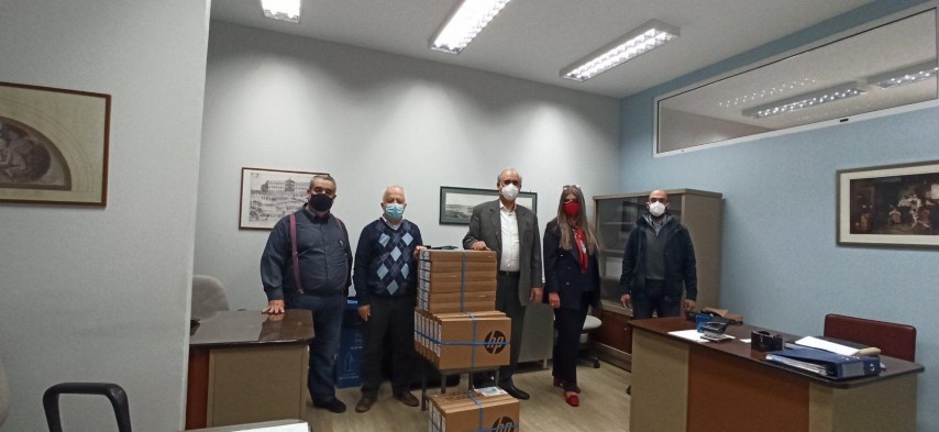 Ο Δήμαρχος Κηφισιάς Γιώργος Θωμάκος, μαζί με τον Πρόεδρο της Δευτεροβάθμιας Επιτροπής Παιδείας Νικήτα Κόκκαλη, Αντιδήμαρχο Νέας Ερυθραίας παρέδωσαν laptops στους Διευθυντές των σχολείων την Παρασκευή 2 Απριλίου 2021.