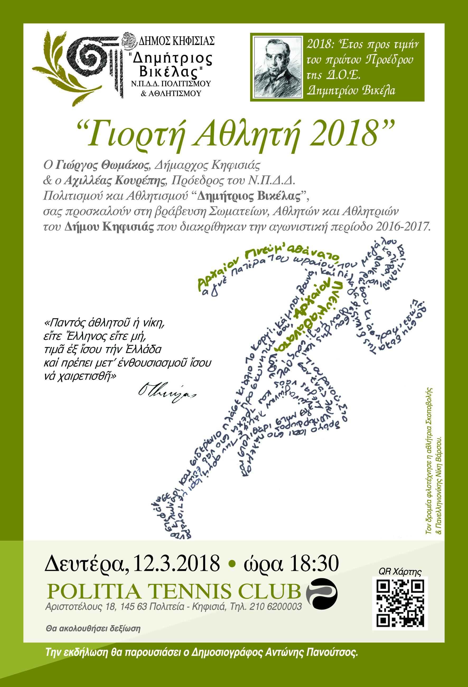 Ο Δήμος Κηφισιάς και το Ν.Π.Δ.Δ. Πολιτισμού & Αθλητισμού «Δημήτριος Βικέλας» διοργανώνουν για ακόμη μία χρονιά, την καθιερωμένη «Γιορτή του Αθλητή»...
