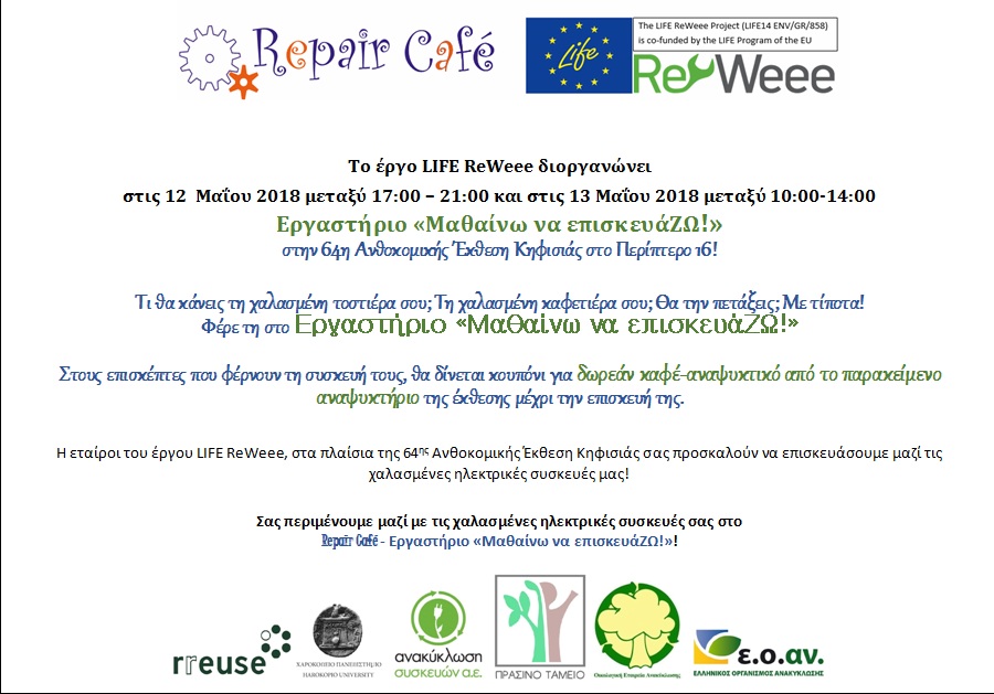 Τι θα κάνεις τη χαλασμένη τοστιέρα σου; Τη χαλασμένη καφετιέρα σου; Θα την πετάξεις; Με τίποτα! Φέρε τη στο Εργαστήριο «Μαθαίνω να επισκευάΖΩ!»