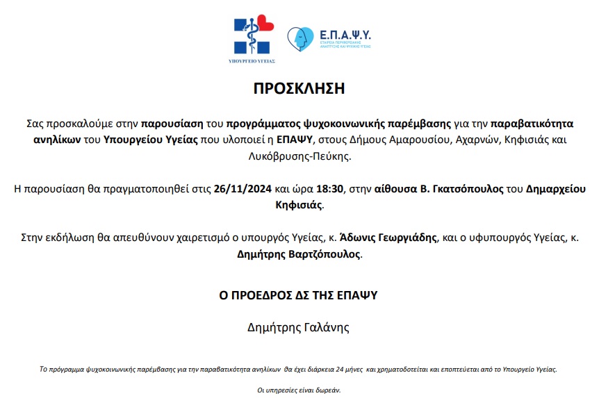 Το Σάββατο 23 Νοεμβρίου 2024 από 10:30-16:30 έξω από τα super market: