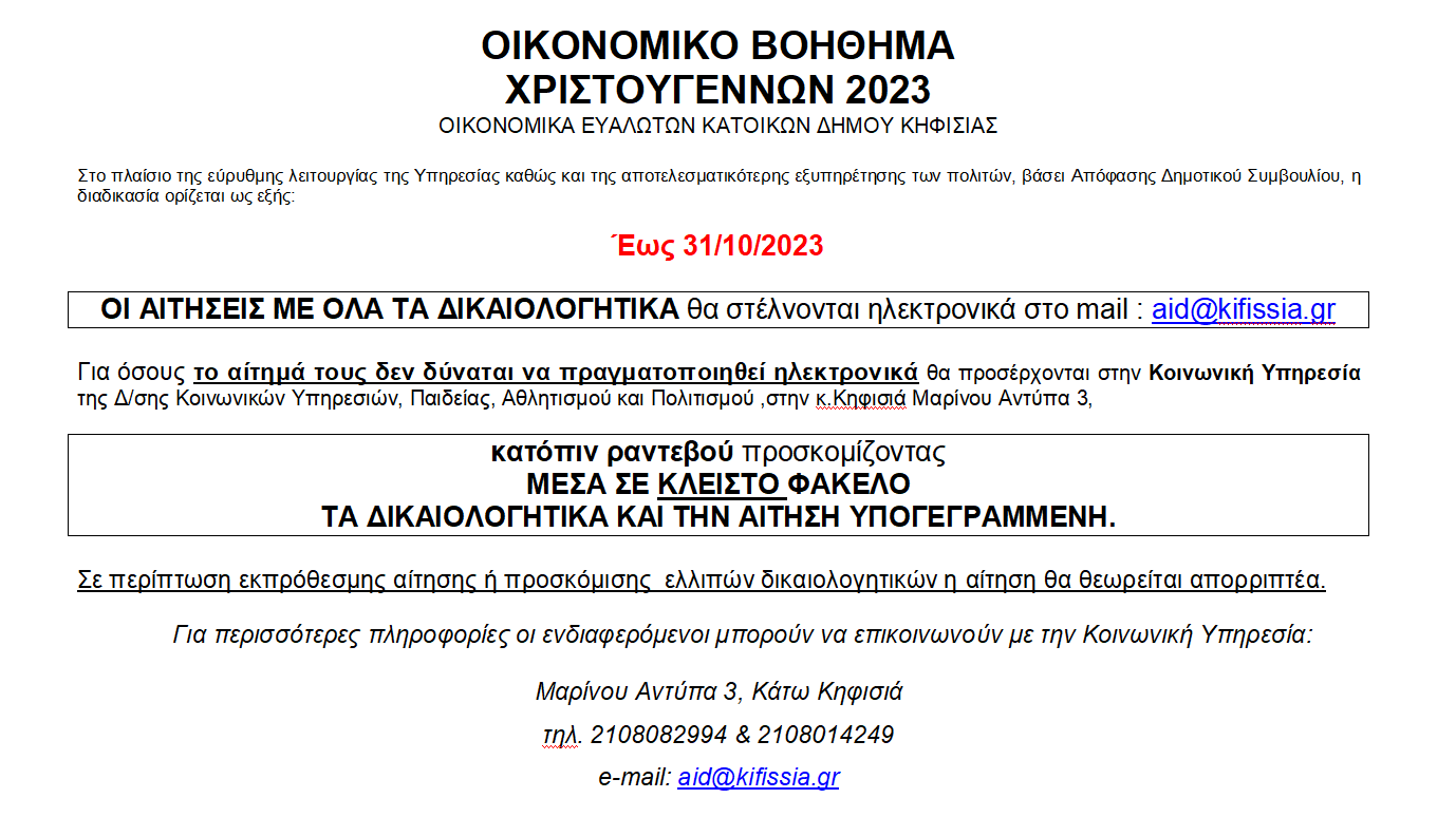 Ο Δήμος Κηφισιάς ως εταίρος της Σύμπραξης ΠΕ Βορείου Τομέα Αθηνών, στο πλαίσιο της συνέχισης υλοποίησης του χρηματοδοτούμενου προγράμματος «Επισιτιστικής και Βασικής Υλικής Συνδρομής του Ταμείου Ευρωπαϊκής Βοήθειας για τους Απόρους (ΤΕΒΑ/ FEAD)»,