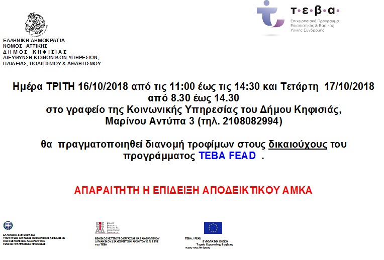 Στο πλαίσιο του Επιχειρησιακού Προγράμματος «Επισιτιστικής και Βασικής Υλικής Συνδρομής για το Ταμείο Ευρωπαϊκής Βοήθειας για τους Απόρους (TEBA/FEAD)»...